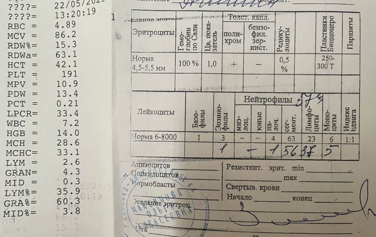 Здравствуйте. С февраля месяца лечилась от двустороннего гайморита. Вот на днях выяснилось что в правой пазухе киста, нужно удалять. На протяжении всего времени горло раздражено. И слизь стекала, прозрачная, с белыми комочками. Пришла к терапевту и сказала что как будто в горле чувствуется хрип переодически, не постоянно…. Он меня послушал, сначала сказал что хрипы есть справа. Я делала уколы цефтриаксона(как раз вылечить гайморит и заодно подлечить эти хрипы). Пришла послушал опять, там же хрипы и остались, и наслушал где то НАД сердцем. И сказал что якобы вам 25, так не должно быть. Пришла бы 80 летняя бабушка он бы понял. А так нет. Их не слышно посторонним, я не всегда сама чувствую их. И сейчас после уколов не пойму есть ли они или прошли, накручиваю может, а может и нет…. Сделала флюру на цифровом (говорят лучше обычного), врач сказал у вас все чисто…. А терапевт мол подумайте сделать кт. … не знаю что и думать теперь… кашля нет. И хрип этот ощущается когда делаю глубокий вдох. Подскажите, что это может быть? Еще перед лечение антибиотиками сдавала анализ крови, он сказал что там все нормально…. Вот результат прикладываю… сейчас назначил Диоксидин через ингаляции. И я еще думаю, то что нужно пить типа линекса, эти же как я поняла антибиотик… чтобы желудок не посадить