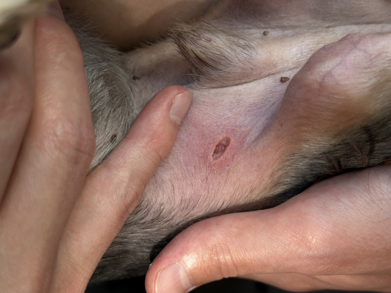 Были в ближайшей ветеринарке, сказали зашивать не нужно, т.к. глубоко, но важное ничего не задето, а зашивают только под наркозом.