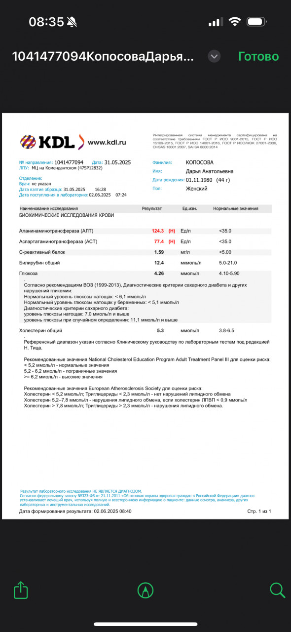 Здравствуйте. Примерно 2,5 недели назад после обеда окрошкой с овощным салатом почувствовала дискомфорт в области правого подреберья, слабость, потом боль опоясывала. Подумала про поджелудочную, хотя ранее никогда не было приступа панкреатита, но знаю, что это такое. 4 дня диеты и полегчало и уехала в отпуск, в отпуске все время беспокоило, боли при приемах пищи при движении, вернулась сразу сходила на узи и сдала кровь. Все время принимала креон, но-шпа. На узи воспалилась поджелудочная, алт и аст сильно завышены. До сих пор боли не уходят. Тупые, ноющие. Аппетит в норме, стул тоже.