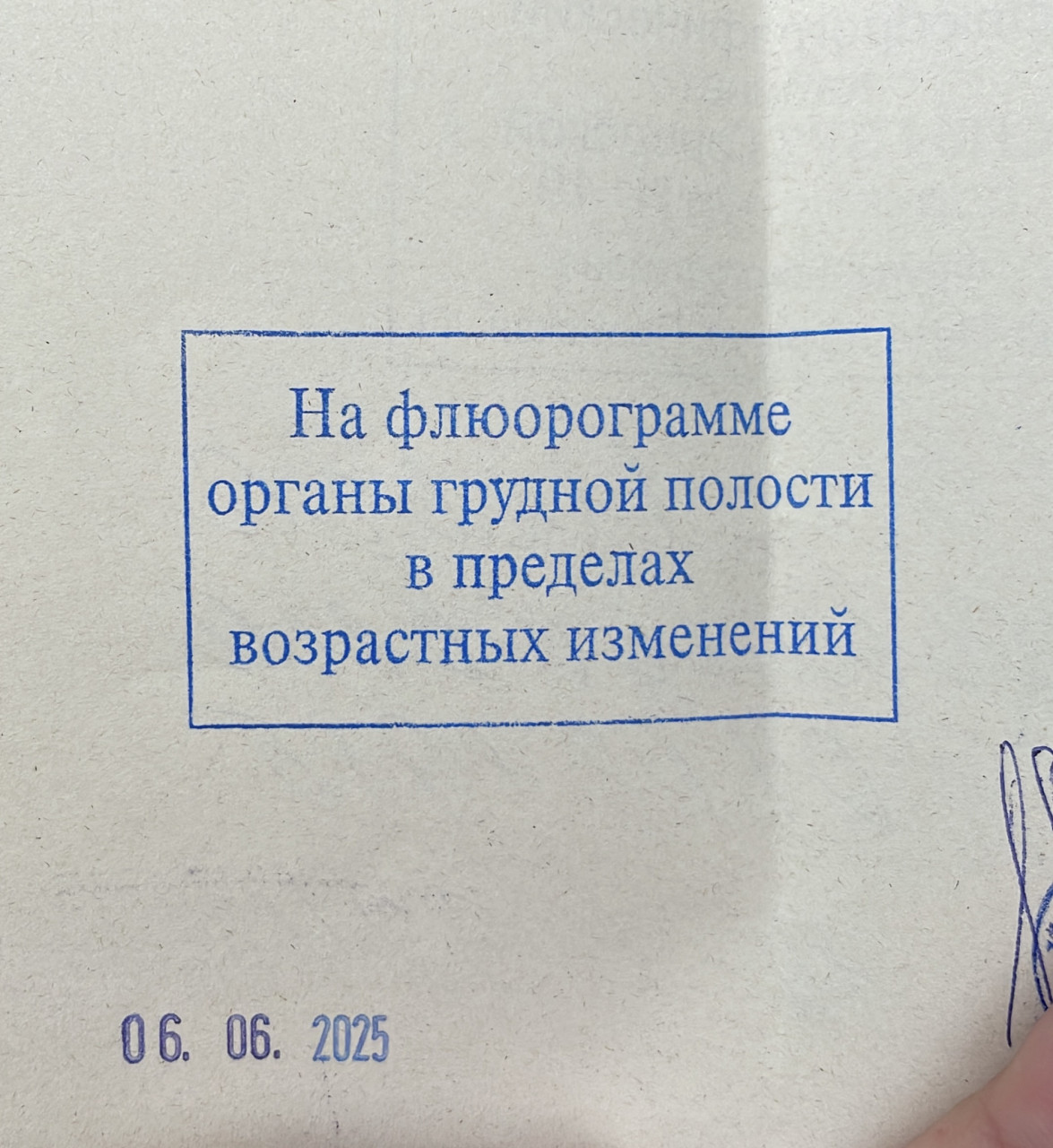 Добрый день!Подскажите,сегодня сделала флюорограмму и получила такой результат!Раньше был штамп органы грудной клетки без патологии,а сейчас другой штамп(((И меня это очень напрягло и испугало. Флг делали по середине и с левого и правого бока.Снимков в поликлинике на руки не дали(Норма ли в что в 40 лет имеются возрастные изменения?