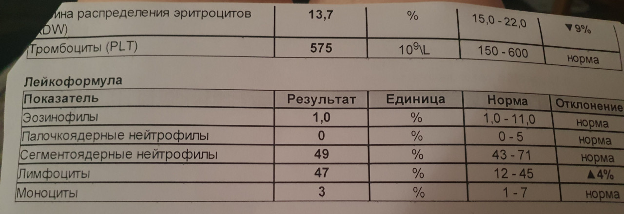 Здравствуйте. По анализам видно, что основные показатели в пределах нормы или близки к ним. Почек и печени серьёзно не задевает, но повышенный креатинин (168,7) и мочевина (9,5) говорят о начинающейся или компенсированной почечной недостаточности, обезвоживании или интоксикации. Также нет воспалительной реакции в общем анализе крови (лейкоциты и нейтрофилы нормальные), поэтому инфекция маловероятна. Возможные причины вирус (панлейкопения, коронавирус), отравление, боль (например, в ЖКТ или позвоночнике), поствакцинальная или постлекарственная реакция, стресс или травма.