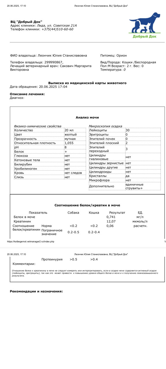 Здравствуйте, хотелось бы узнать расшифровку анализа мочи у кота,в конце мочеиспускания начал вылизывать гениталии