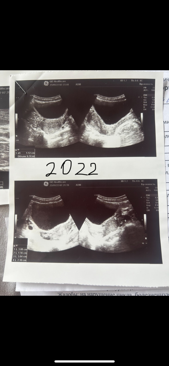 Здравствуйте, подскажите пожалуйста по моему вопросу. У меня очень болезненная менструация очень много крови со сгустками выходит цикл нерегулярный лет с 15 ходили по врачам делали узи ставили диагноз вторичная олигоменорея и вторичная дисменорея назначали циклодинон от которого толку 0 от боли так тоже ничего и не помогает назначали и пить до менструации обезболивающее за 5 дней до найз по 1 таб 2 раза в день и 3 дня менструаций, в первый особенно болезненный день свечи с индометацином больно невозможно как схватки потом в 17 лет поставили диагноз диффузно кистозная мастопатия в груди ощущаю комки грудь очень болит до месячных и во время них опять же назначали мастодинон который ничего не дал и обезболивающее вот и все пропила мастодинон 3 мес. В больнице врач узи начала говорить а кто вам такое в груди увидел хотя это она же и делала узи в первый раз я прикреплю ниже узи малого таза за 2021 и 2022 год давно подозревала у себя эндометриоз все симптомы подходят и вот вчера мама поехала на узи из-за кровотечения и ей поставили эндометриоз впервые за 40 лет в другой клинике заключение: Эхографические признаки гиперплазии эндометрия, умеренных диффузных изменений миометрия по типу эндометриоза, миомы тела матки небольших размеров, фолликулярной кисты правого яичника. зашла сегодня ради интереса в чат джи пи ти и отправила ему свое узи он расшифровал мне его абсолютно по-другому за 2021 год вообще сказал что это узи мочевого пузыря я вообще в шоке а в узи за 2022 год нашлись действительно болезни а врач узи пишет что там все в норме кому верить уже не знаю( забыла указать длина цикла 32-51день, менструация длится 10 дней под конец совсем мазня и раньше бывало такое что между месячными была мазня в середине цикла сейчас во время овуляции болит левый яичник во время менструации боль отдает аж в ноги они будто отнимаются