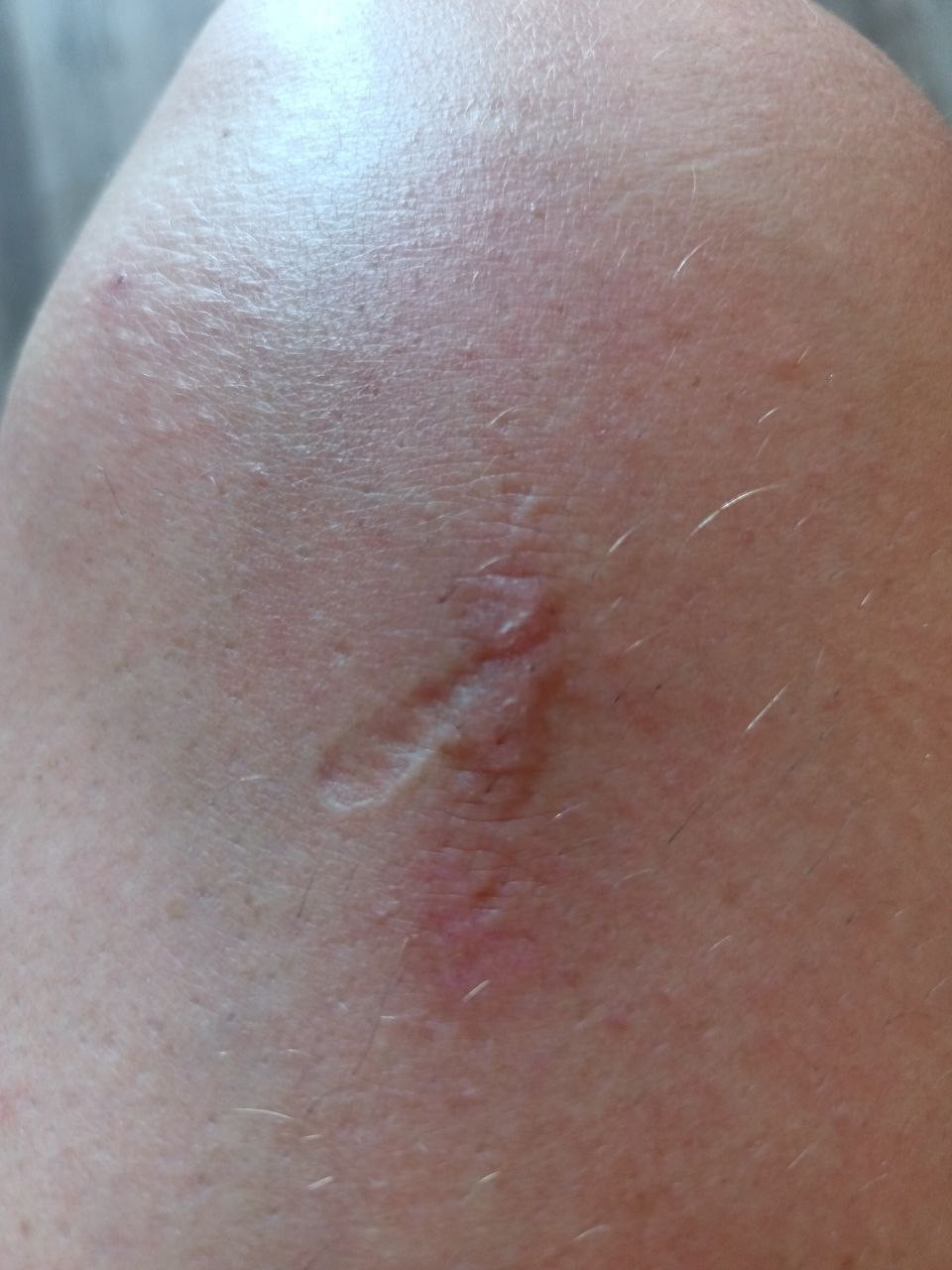 Добрый день. По фото видно участки с очагами гиперпигментации и уплотнениями, возможно с незначительным шелушением это может быть поствоспалительное изменение после дерматита, либо проявление хронического дерматоза (например нейродермита или плоского лишая).