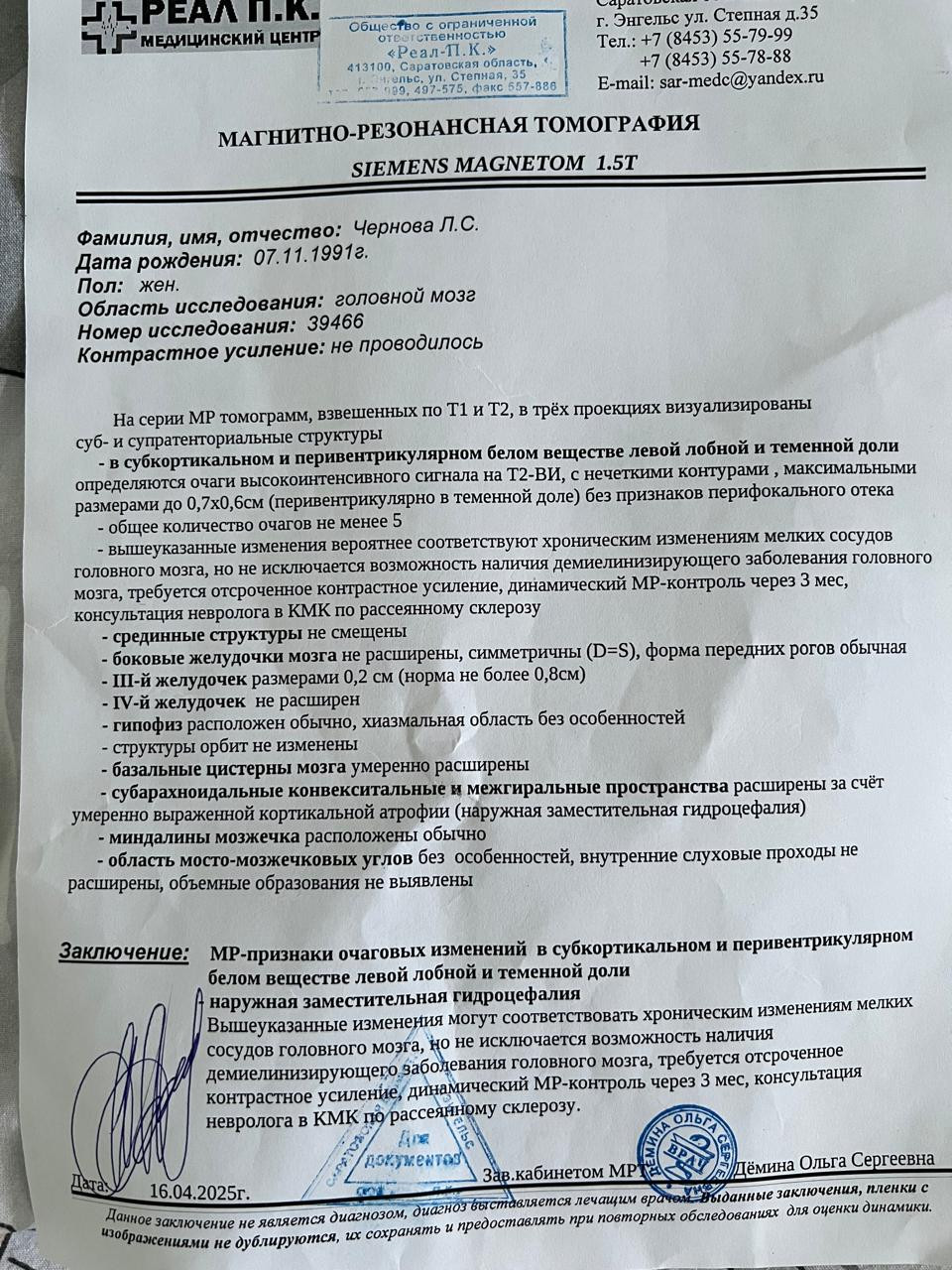 Роды в 2022 и 2023 году. С 2022 дети по очереди на руках, как правило с левой стороны. По мрт выявлены очаги. Контраст не копят. Анализы ликвора люмбальная пункция в норме. Антител к аквапорину4 не обнаружено.