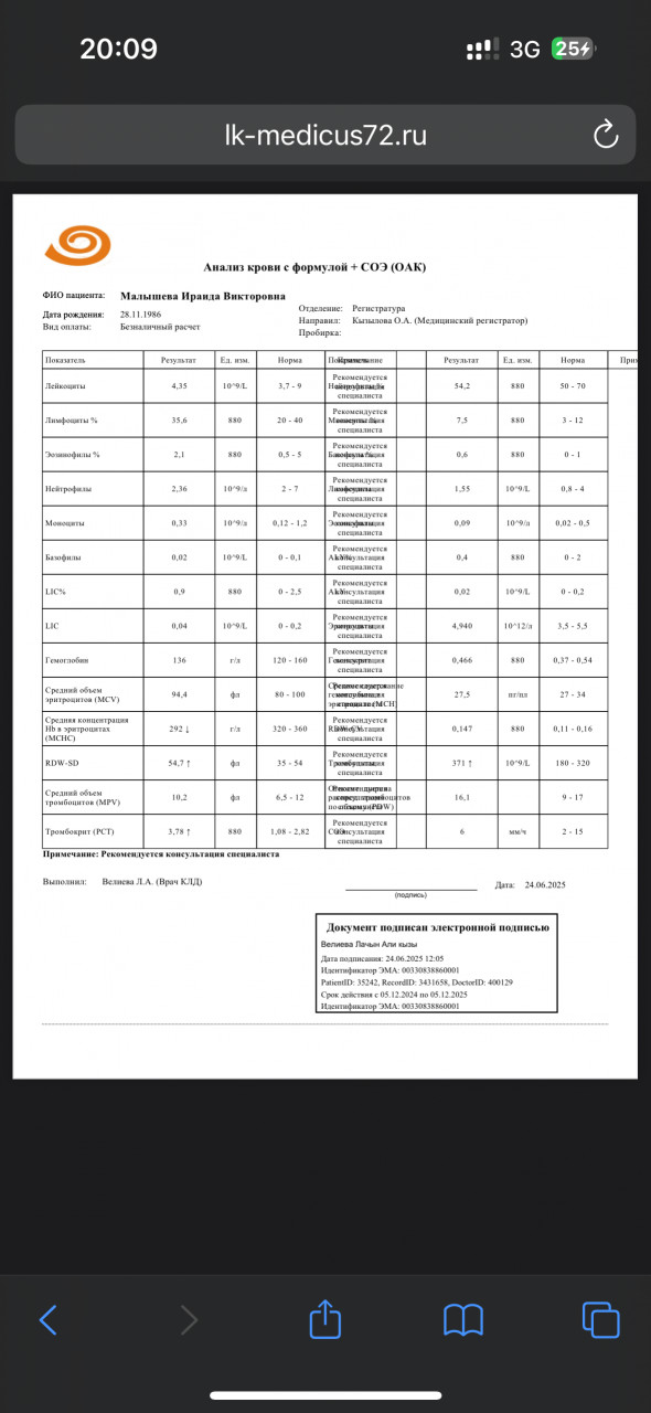 Здравствуйте. Ваш анализ крови в целом в пределах нормы. Лейкоциты, гемоглобин, тромбоциты, формула  без выраженных отклонений. Небольшое снижение MCHC (292 при норме от ~320) может говорить о лёгком снижении насыщения эритроцитов гемоглобином, но клинически это незначимо при нормальном Hb.