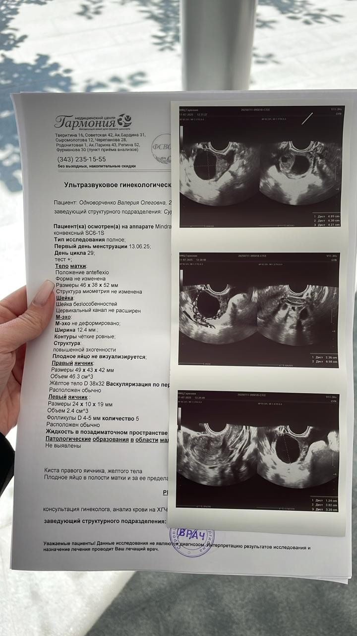 Здравствуйте. На фото заключение закрыто, а по самим снимкам УЗИ определить наличие беременности невозможно т.к изображение слишком нечеткое. Если тесты положительные и есть задержка, беременность вероятна, но возможно срок еще слишком мал и плодное яйцо пока не визуализируется. Повторите УЗИ через 5-7 дней и обязательно сдайте ХГЧ в динамике через 48 часов  это поможет уточнить ситуацию.