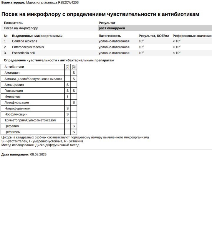 Здравствуйте, у меня сложный вопрос. Ранее были одни роды , если это важно.30 июля и 4 августа был незащищённый ПА с мужем, на тот момент уже некоторое время беспокоили немного странные выделения, которые несколько месяцев уже мониторили у гинеколога. 5 августа у гинеколога взяли мазок , и теперь выявили во влагалище Уреаплазму, гарденеллу, герпес 2 типа, ВПЧ 16, E.Coli и Enterococcus faecalis и Candida albicans... ещё дисплазия шейки матки из-за ВПЧ 16 , которой надо поскорее заниматься. Врач назначил сначала санацию влагалища: Гентамицин инъекции , Нистатин, Макмирор, лактобактерии. А потом , при успешном лечении конизация шейки матки, и поскорее. И для мужа лечение.А теперь гинеколог отложила лечение, говорит, что я могла несмотря на воспалительный процесс забеременеть в эти дни и тогда антибиотики нельзя. 30 июля и 4 августа был ПА , первый день последних месячных был 22.07.25 , цикл плавающий 28-35 дней, в среднем 31 день. Могла ли я забеременеть в эти дни , ещё и с таким состоянием малого таза? У меня аллергия на амоксициллин и все пенициллины а так же на ко- тримоксазол , ещё имеются резистентности на некоторые антибиотики, что теперь вообще можно делать , лечится местно или системно и чем ? Гинеколог говорит, дождаться, будет ли задержка 22 августа, но я буду терять время, воспалительный процесс происходит сейчас и интенсивно. Очень переживаю.