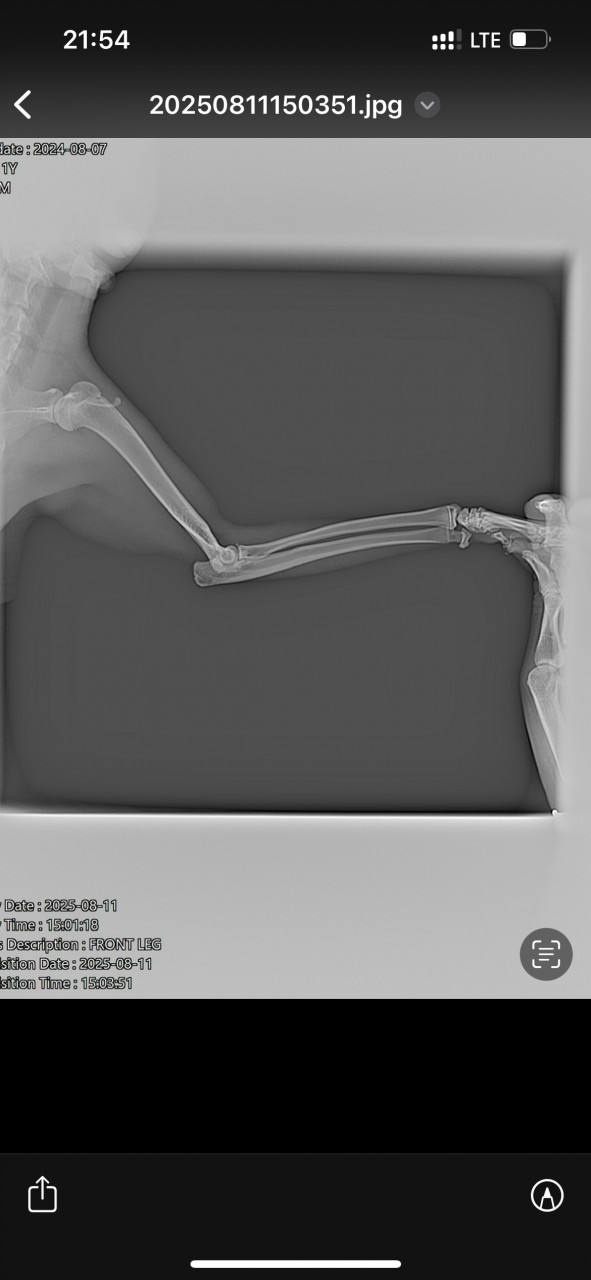-Обратитесь к ветеринарному ортопеду или хирургу для выбора тактики т.к чаще всего требуется остеосинтез (пластины, спицы).