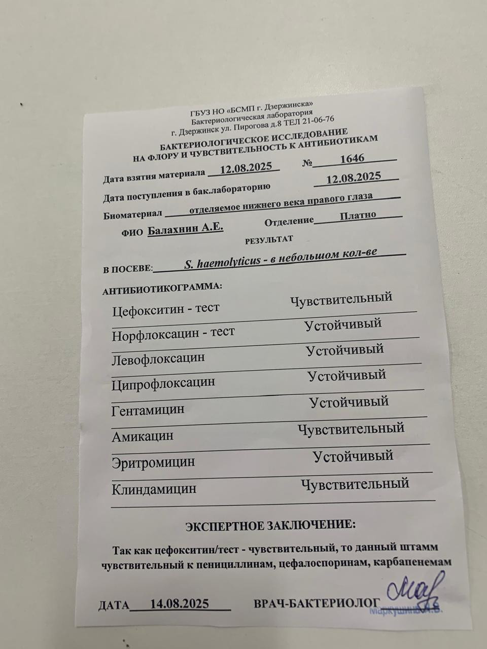 Здравствуйте. С учётом вашего анализа и чувствительности возбудителя, наиболее подходящим вариантом будут капли с аминогликозидами. В офтальмологии применяют раствор Амикацина (обычно используют инъекционный раствор 0,5 г/2 мл, который разводят до нужной концентрации и закапывают по назначению врача 3-4 раза в день). Готовых глазных форм клиндамицина нет, поэтому его не применяют. Поэтому рекомендую обратиться очно к офтальмологу для осмотра и назначения правильной дозировки.