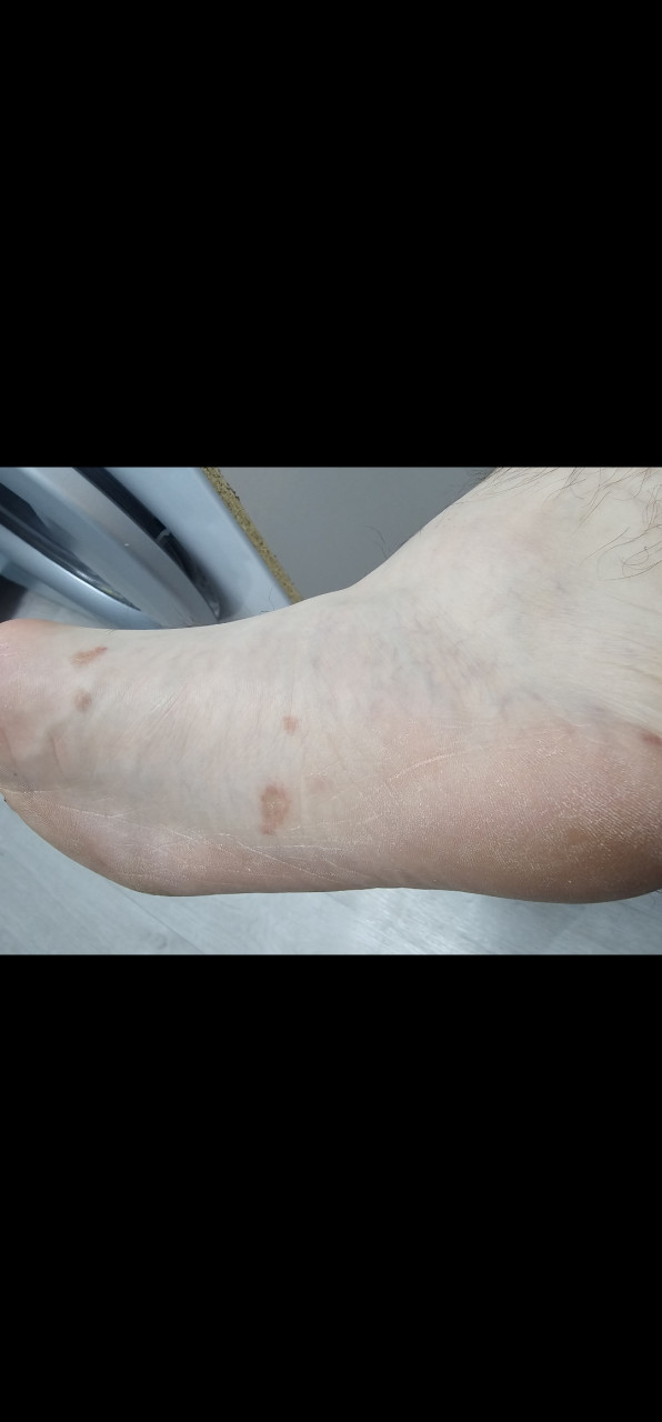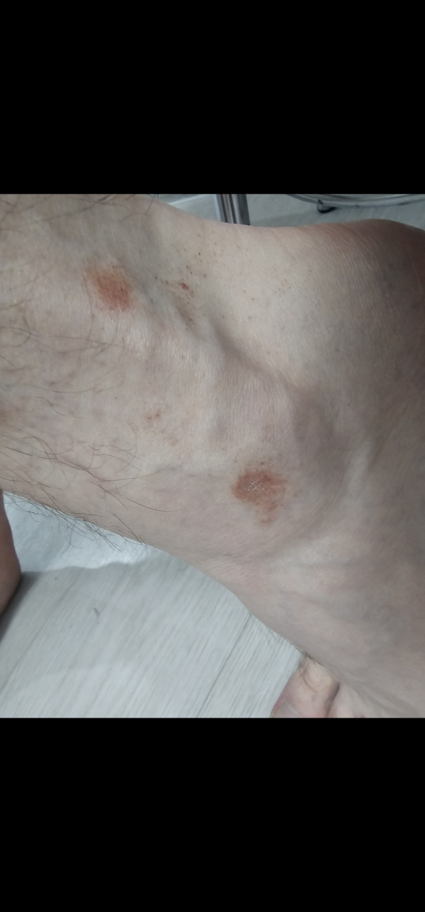 Здравствуйте. По фото пятна на коже напоминают проявления грибковой инфекции или дерматита. Если пятна никак себя не проявляют (не чешутся, не шелушатся, не болят), то это скорее говорит в пользу грибковой инфекции или поствоспалительных изменений кожи, чем классического дерматита. Но точно сказать можно только после очного осмотра и при необходимости соскоба с кожи.