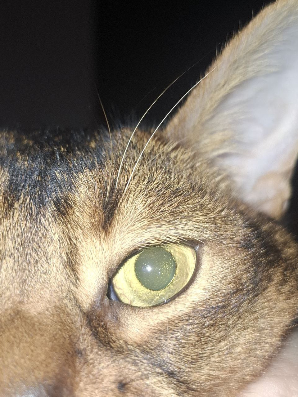 Здравствуйте! Заметили объект у внутреннего глаза радужки кота. Это червь или просто рисунок радужки такой?