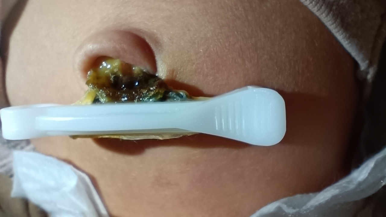 Здравствуйте. По фото видно признаки возможного воспаления пуповинного остатка и наличие желтовато-зеленого налёта и неприятного запаха может указывать на начало омфалита (воспаления пупочной ранки). Это требует осмотра педиатра как можно скорее, чтобы исключить распространение инфекции. До осмотра важно держать область сухой и чистой, не закрывать плотно пелёнками и подгузником, можно аккуратно обрабатывать 3% перекисью водорода и затем антисептиком (хлоргексидином), не использовать мази и не перевязывать самостоятельно. Срочно обратитесь к врачу для обработки и назначения лечения.