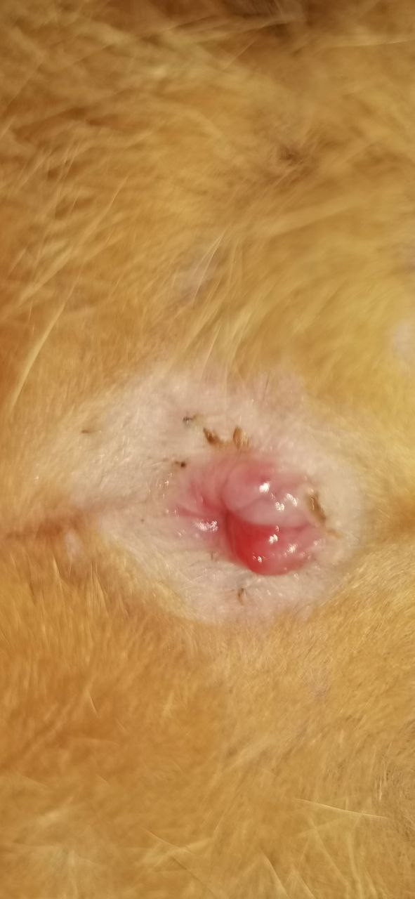 Добрый день! Вчера кот пошел какать и в начале процесса очень громко закричал (такое впервые). Я посмотрела под хвост, когда он какал. Выглядело как кольцо красного цвета. После дефекации оно исчезло. Как выглядит анус сейчас фото прилагаю. Кал обычного цвета и консистенции.