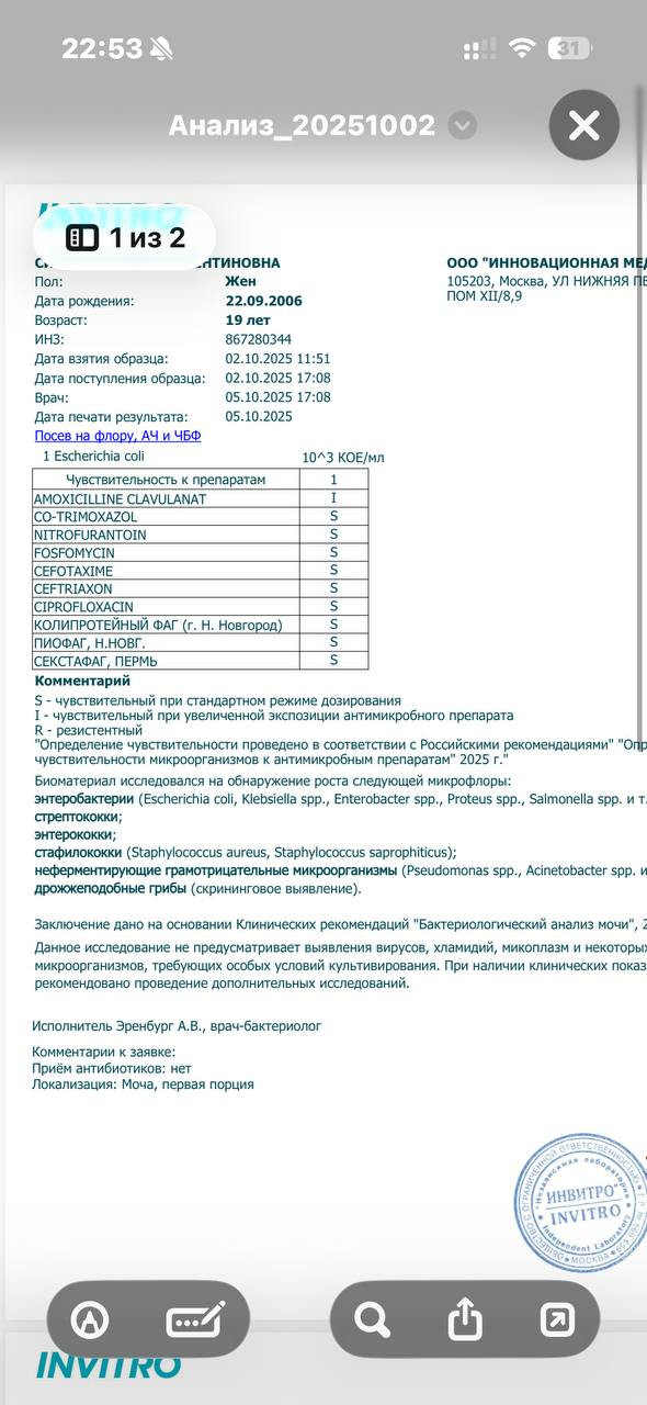 Здравствуйте. Выявлен Escherichia coli в небольшом количестве и чувствительность к большинству препаратов и фагов. На сроке 27 недель лечение подбирается особенно аккуратно, учитывая безопасность для плода, поэтому чаще применяют бактериофаги или разрешённые во время беременности антибиотики при наличии симптомов. При бессимптомном бактериовагинозе иногда наблюдают без немедленного лечения, но решение принимает гинеколог ведущий беременность. Рекомендую обсудить результаты очно, чтобы выбрать щадящую и эффективную схему.