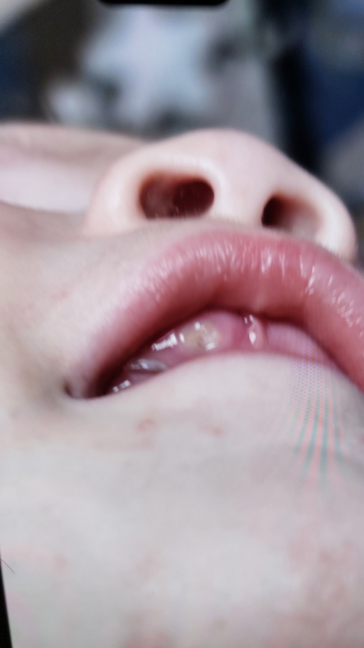 Здравствуйте. Качество фото очень низкое поэтому точно сказать нельзя, но похоже на участок припухлости или гематому десны после удара и возможно там действительно начинается прорезывание зуба, а травма усилила воспаление. Обычно такие участки проходят сами за несколько дней. Пока можно аккуратно протирать десну раствором ромашки или мирамистином и следить, чтобы ребёнок не травмировал место снова. Если припухлость увеличится, появится гной или температура нужно очно показаться детскому стоматологу.