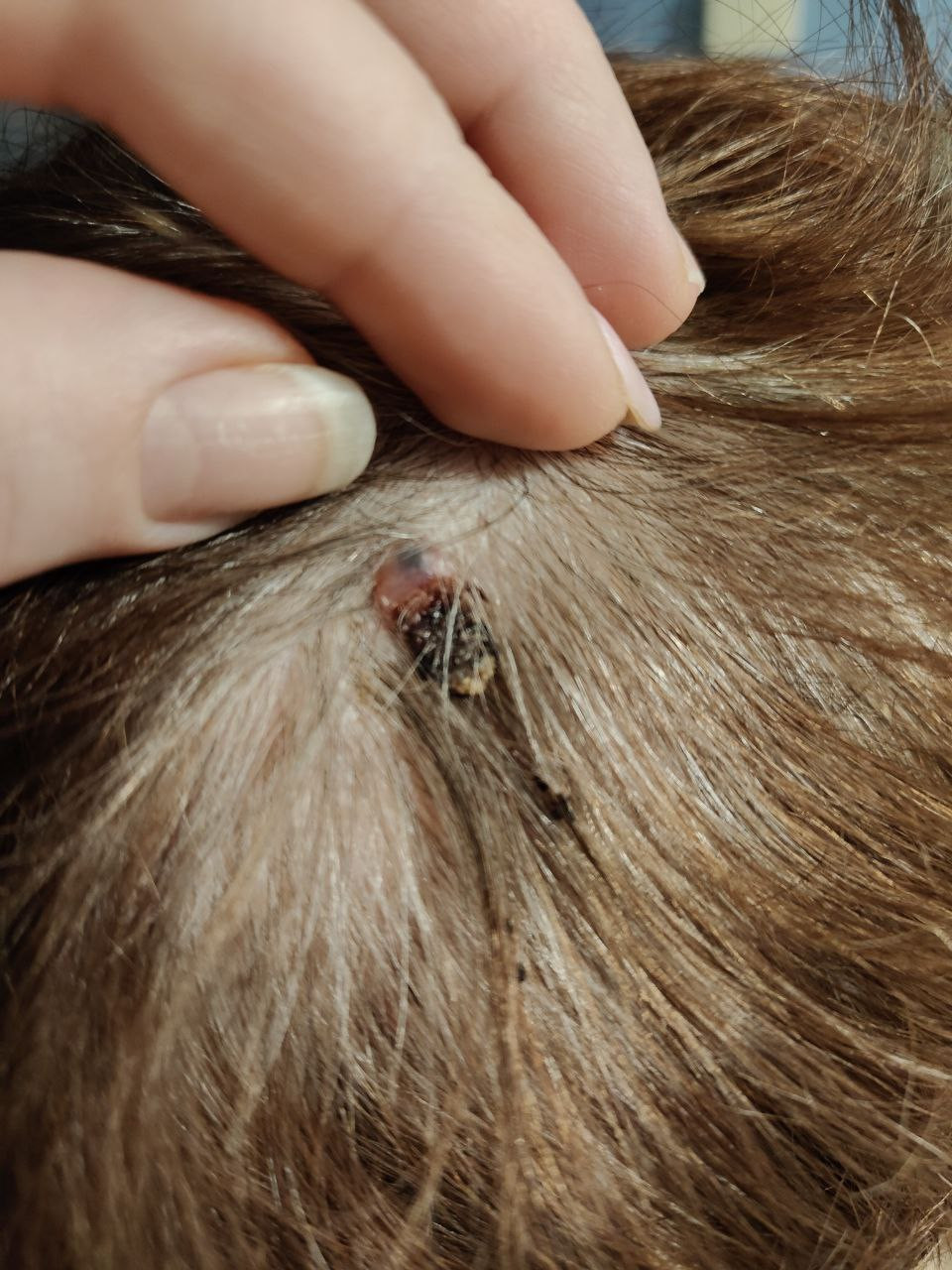 Добрый день !У мамы сегодня увидела болячку на голове , вместе не живем с ней , поэтому раньше не видела , недавно ударилась головой и теперь эта болячка начала болеть , то болит то нет , подскажите что это может быть , чем лечить ?