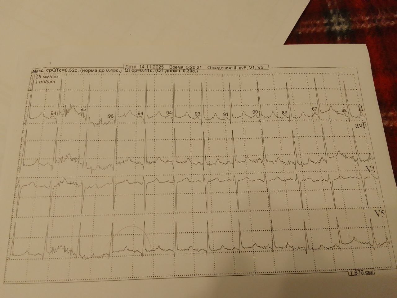Здравствуйте делал холтер недавно направила кардиолог потому что увидели признаки впв, в результатах обнаружил что был эпизод удлинение до 0.52. На ЭКГ у меня интервал QTc которые делал в октябре был в рамках нормы. Переживаю из-за холтера это ведь опасно может быть, есть ли повод для паники? Фото не загружается пишет что слишком тяжелое. Кроме того в общем эпизодов 33 но до более меньшего значения и общей сумме 27 минут.