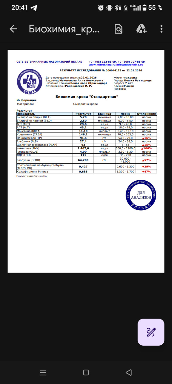 Вопрос в категории "расшифровка анализов" /