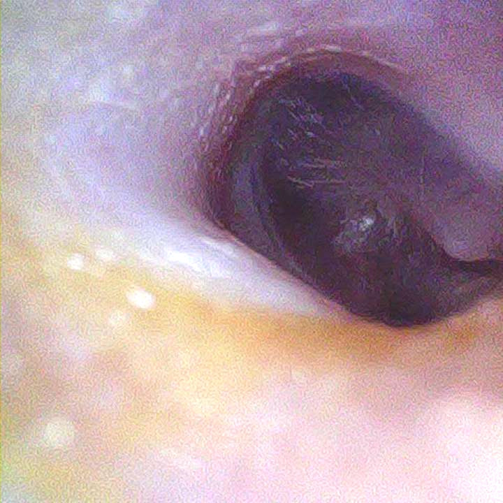При отоскопии постоянно закрывает уши руками. Позволяет надавливать на козелок, болезненной реакции не показывает. Но не позволяет прикасаться к ушной раковине и немного оттягивать назад уши. Поэтому фотографии сделаны без прикасания к ушам ребенка.