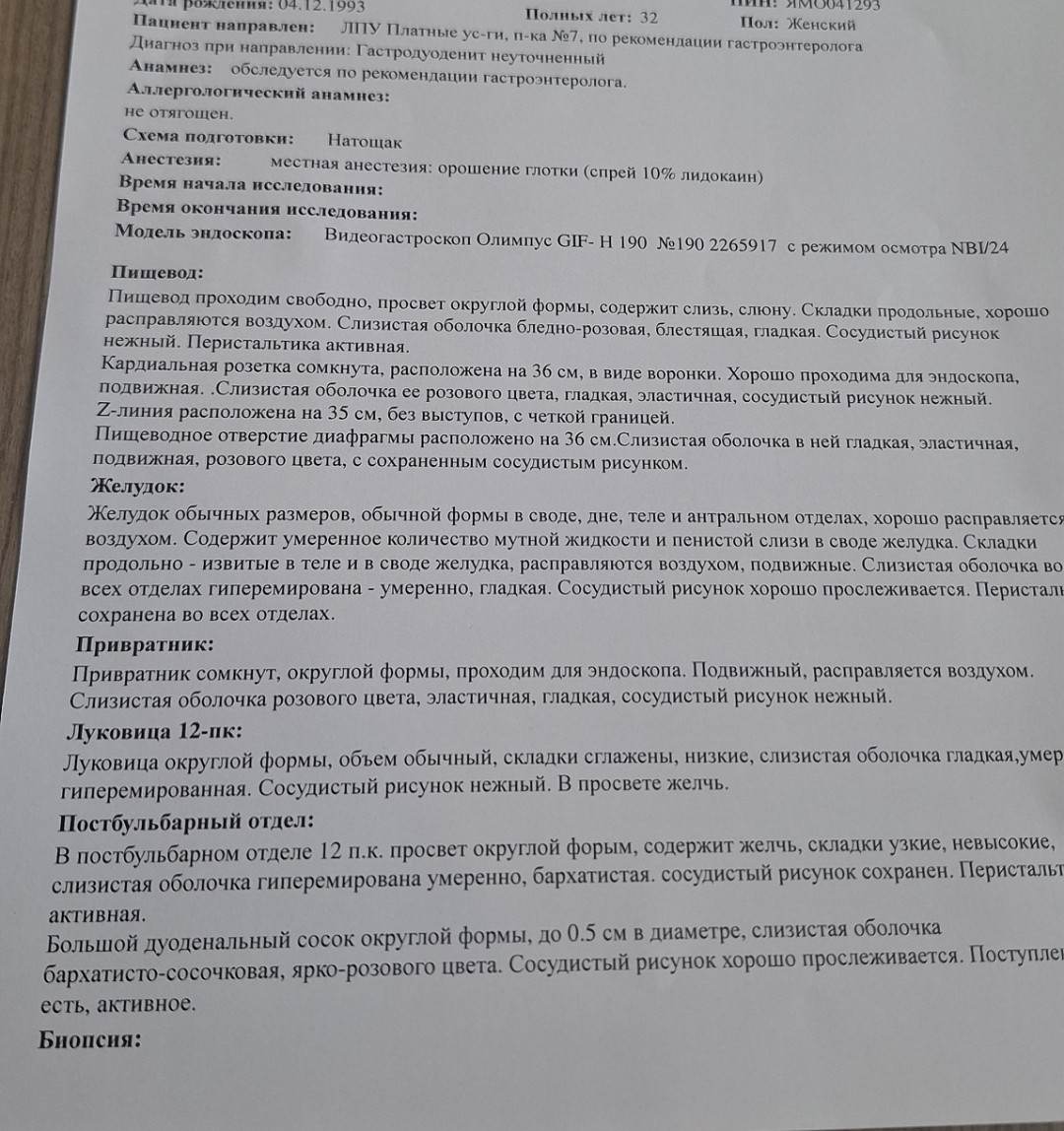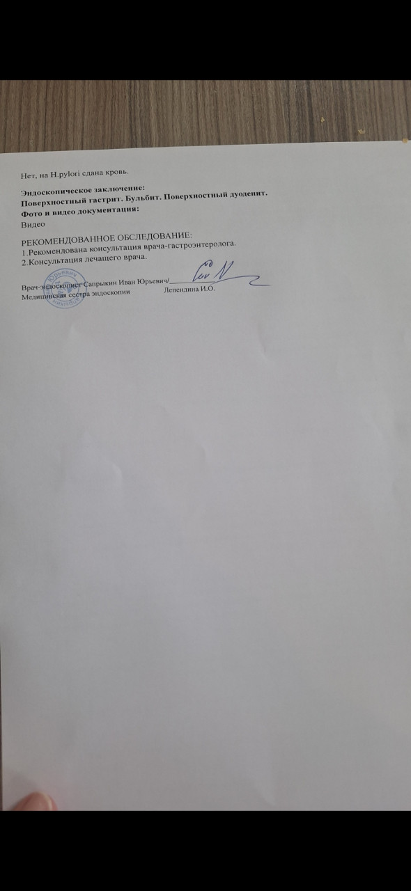 Здравствуйте! Имеется камень в желчном пузыре 2 см. Периодически появляются приступы боли в области желудка или поджелудочной железы. Сдала анализ на хилактобактерии, показал положительный результат. Гастроэнтеролог направила сделать ЭГДС, заключение : поверхностный гастрит, бульбит, поверхностный дуоденит. Гастроэнтеролог сейчас в отпуске, запись к ней будет не скоро. Терапевт назачил