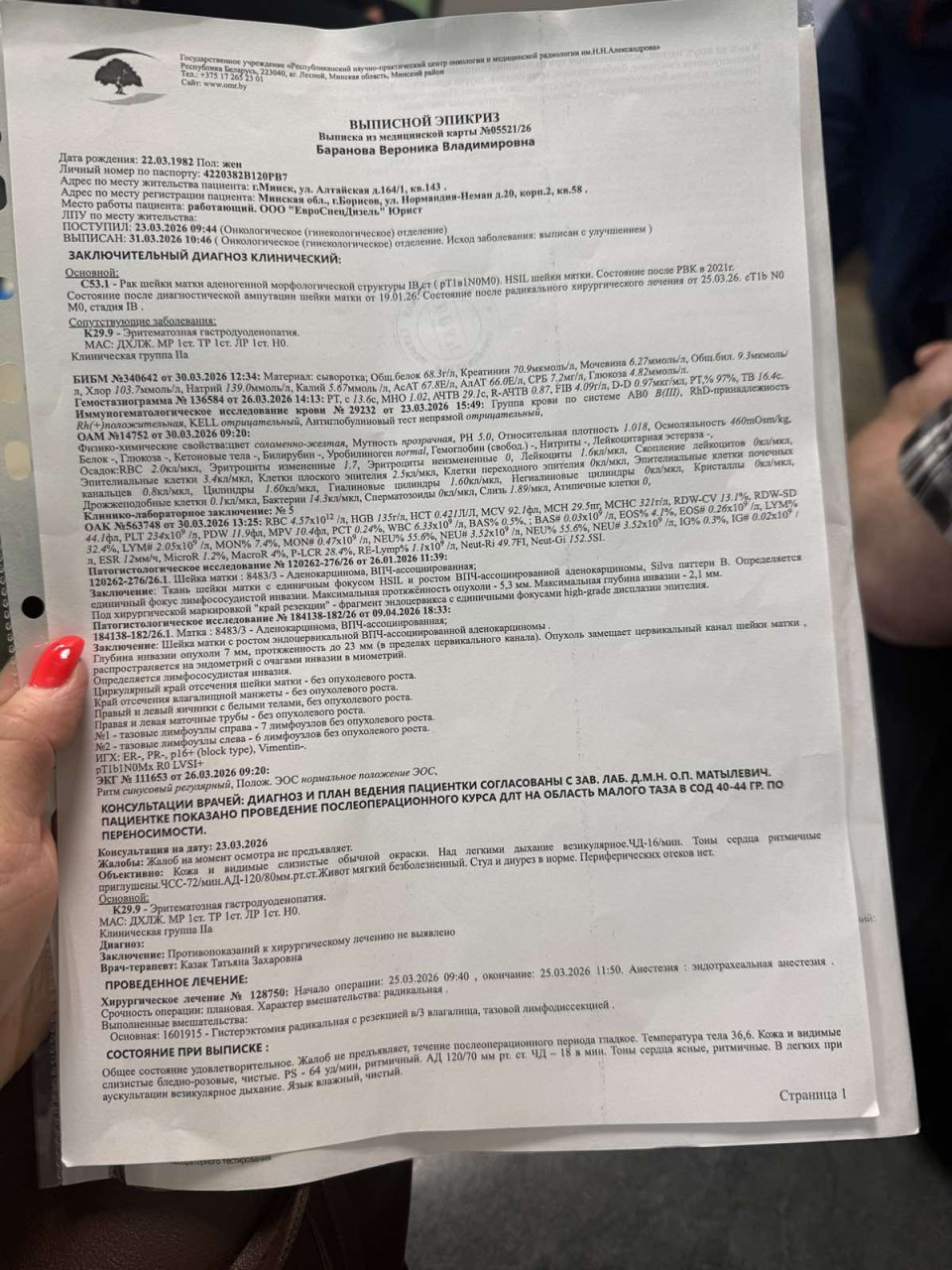 Рак шейки матки 1В